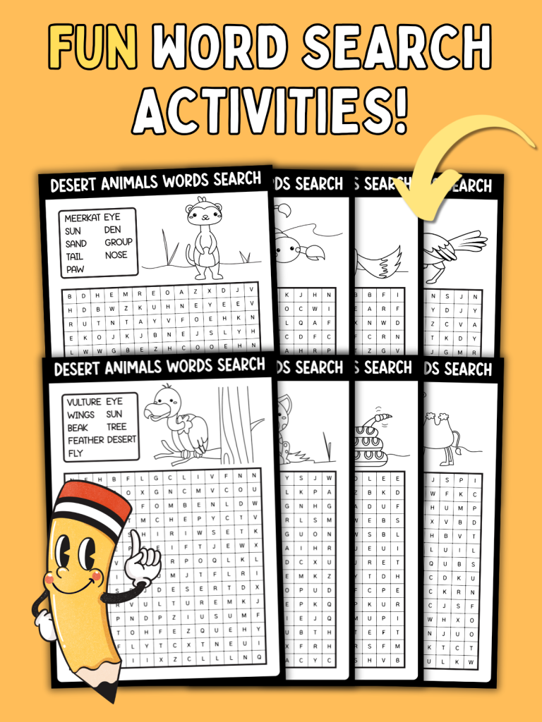 Whether you’re teaching a desert habitat unit, homeschooling, or looking for a quiet, screen-free activity, these themed word searches are easy to use, educational, and exciting for all ages.