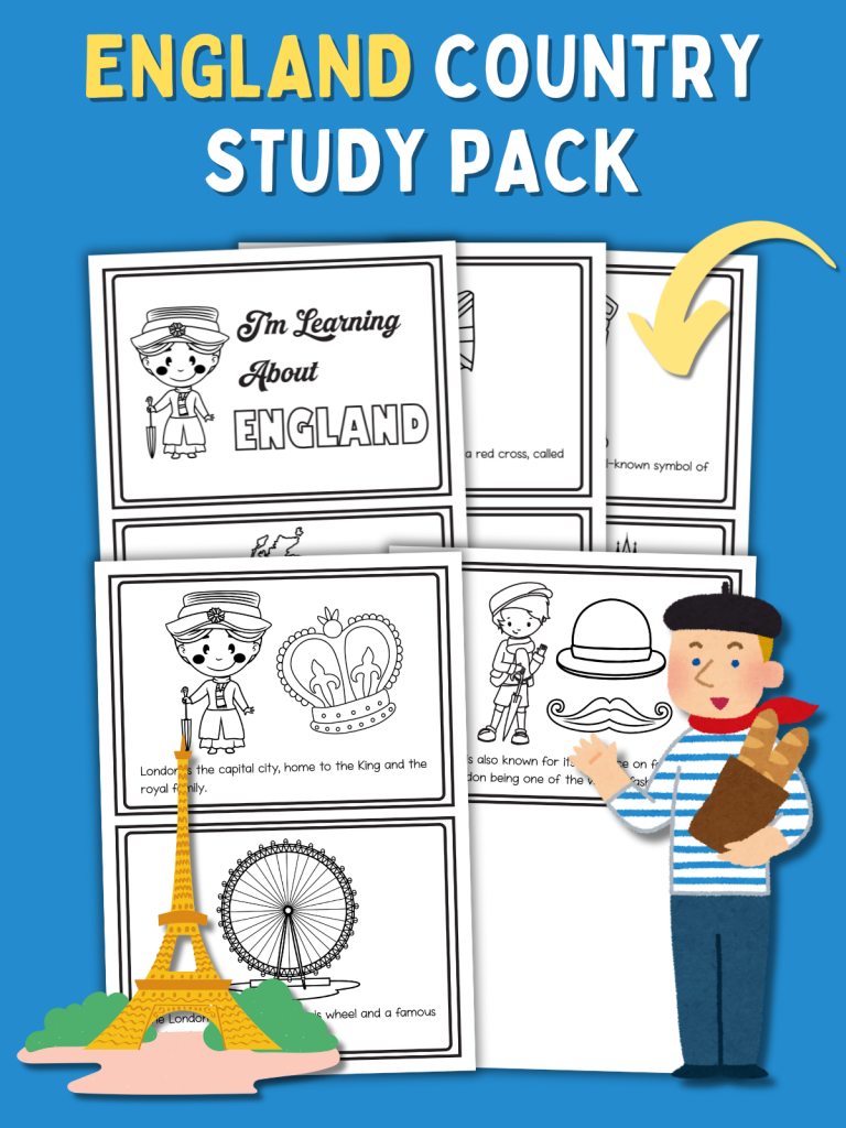 If your little learners enjoyed this England pack, be sure to check out the other Country Study Worksheets on the blog — including China, France, India, and more! Each set features simple facts, kid-friendly illustrations, and printable pages that make geography come alive.