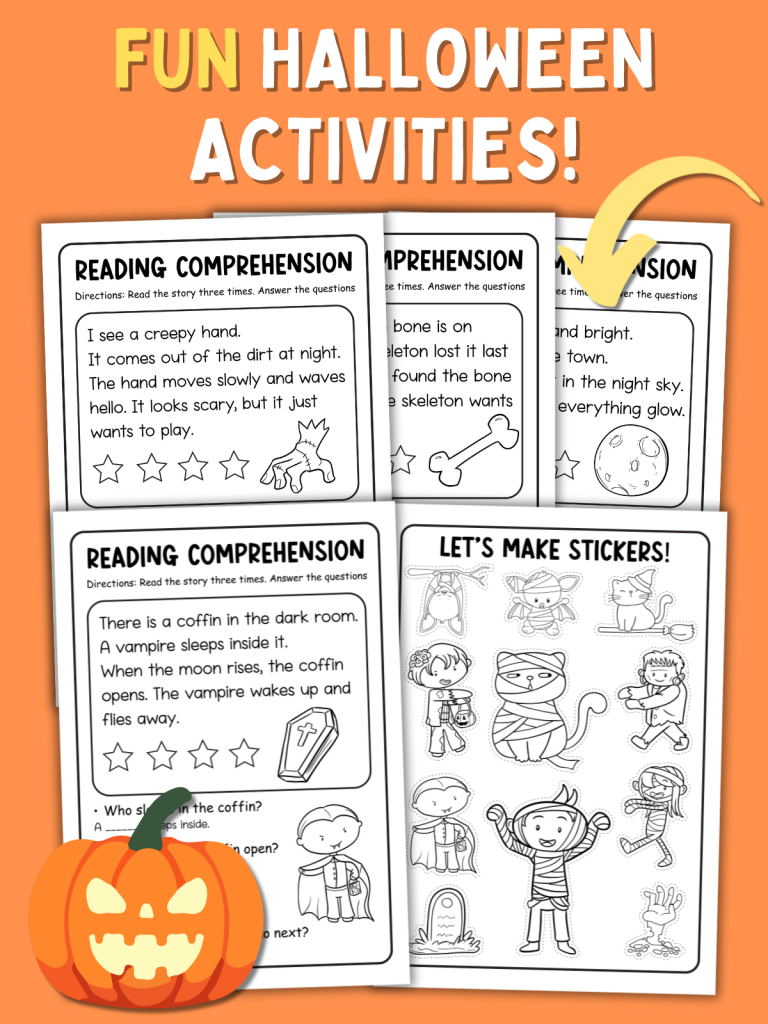 Here are a few ways teachers and parents can use these Halloween comprehension pages: