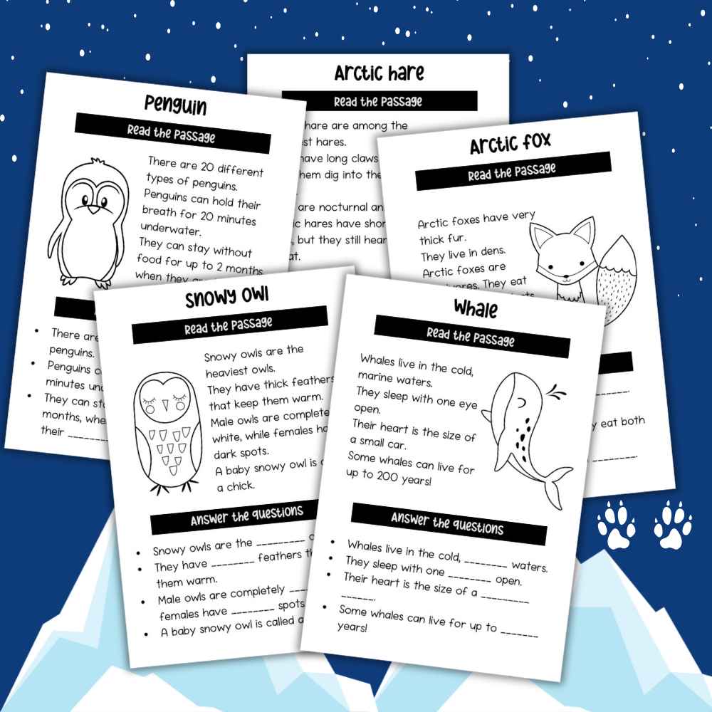 These Arctic animals comprehension worksheets can be a fun and engaging way for children to learn about these incredible creatures while developing their reading and comprehension skills.