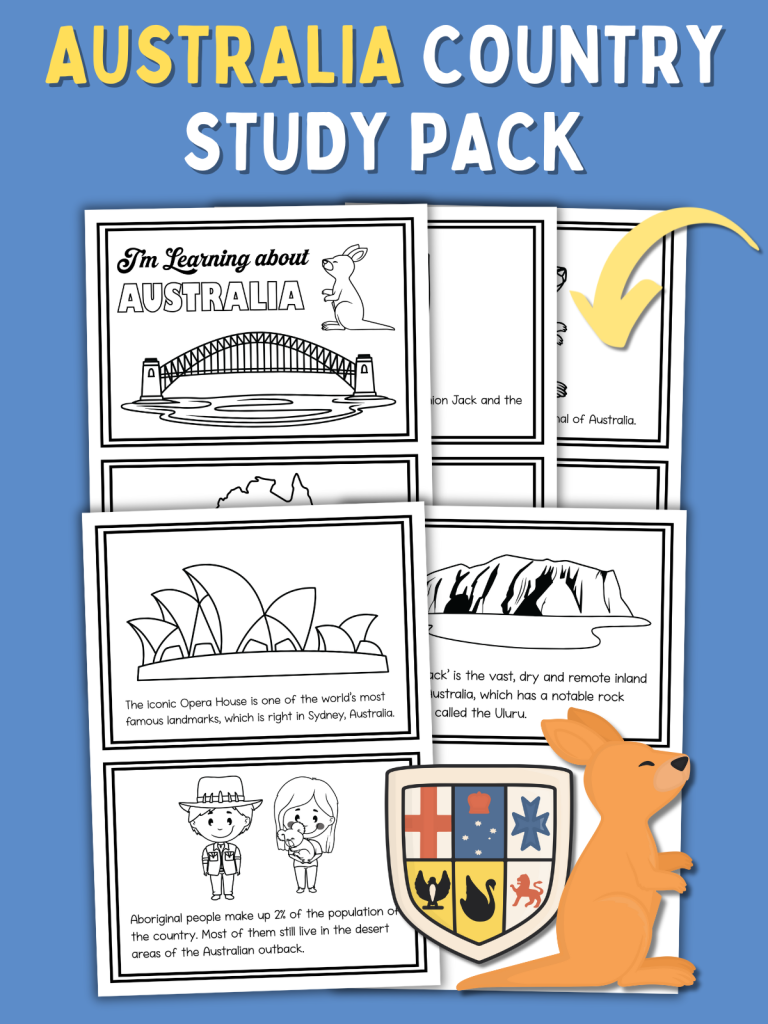 Bring the wonders of Australia into your classroom or home with this free Australia Country Study Pack for kids. Each page is filled with simple facts, engaging text, and creative illustrations that make learning about geography and culture exciting.