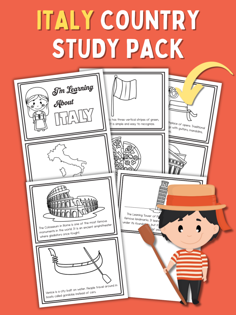 Bring Italy’s art, culture, and history into your classroom or home with this free Italy Country Study Pack for kids. Each page is filled with fascinating facts, fun illustrations, and simple text that make learning engaging for young readers.