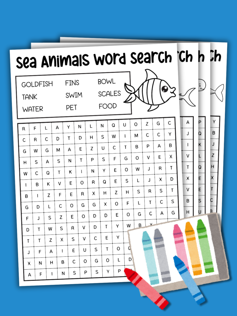 • Goldfish Word Search – A favorite pet! Find words like bowl, tank, and scales while learning about this cheerful little fish.