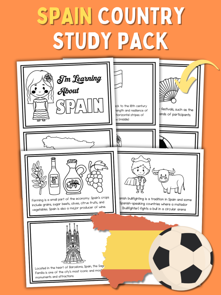 Bring the spirit of Spain into your classroom or home with this free Spain Country Study Pack for kids. Each page is filled with simple facts, beautiful illustrations, and creative activities that make world learning both fun and educational.